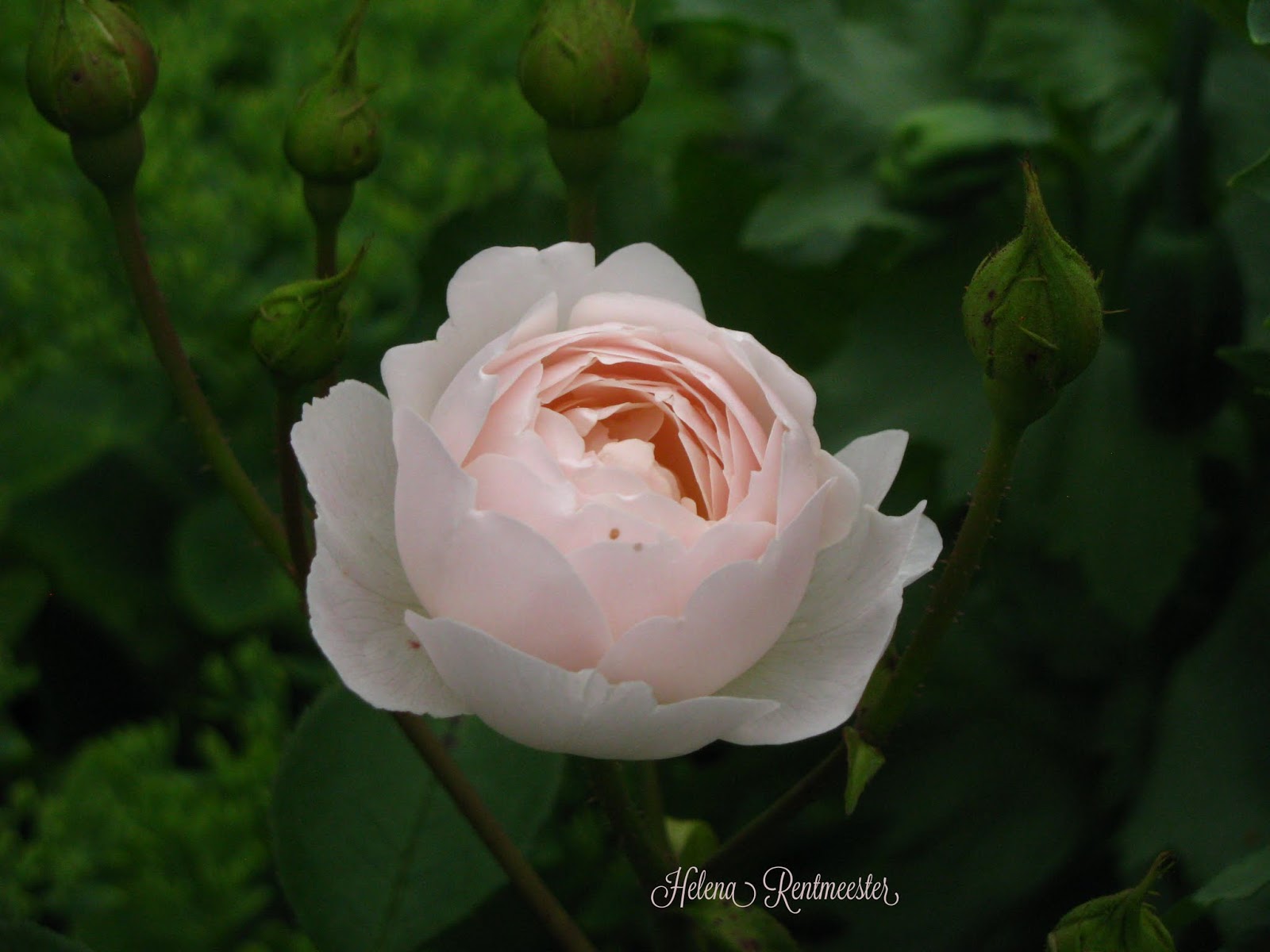 | Desdemona is een nieuwe roos van David Austin. Hij is heel zachtroze, bijna wit, en bloeit voortdurend en zeer rijk |